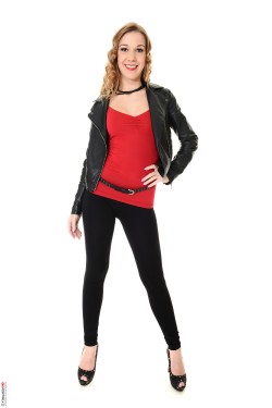 Oh my, get ready for a visual feast! In the "Blind Date" scene, the stunning Alexis Crystal starts by rocking a sassy look in a leather jacket, red top, and tight black pants. Then, she playfully removes her jacket, revealing her toned body and a cute black bra underneath. With seductive moves, she slowly lifts her red top, teasingly exposing her breasts and teasing us with glimpses of her nipples. As the scene heats up, Alexis turns around, giving us a full view of her amazing ass as she bends over, revealing her lacy black panties. She continues to tease and tantalize, making this one hot striptease you won't forget!