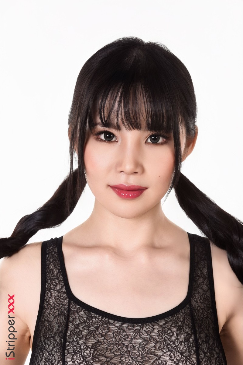 Marin Niko, with her hair in pigtails, is wearing a black net outfit with thigh high stockings and showing off her body in a seductive way! In the striptease scene "Sexy Bunches" she is flaunting her busty body while looking at the camera with desire.