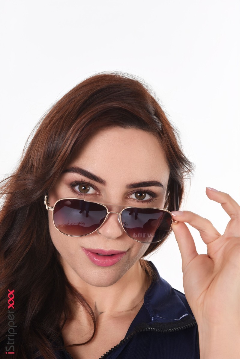 The exciting scene "I Plead Guilty" features the captivating stripper Venus Rey, dressed provocatively as a police officer in a tight blue uniform with fishnet stockings. She confidently poses with a baton, ready to serve and protect in a truly unforgettable performance.